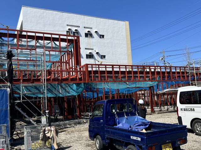 鉄骨とはその名の通り「鉄」の「骨」です。人間の体もいかに強靭な筋肉あるいは皮膚や臓器があったとしても、骨がまともでなければ動くこともままならず、程度によっては立っていることさえもできません。建物も同様です。その大事な建物の「骨」を製作するのが当社のメインの仕事です。